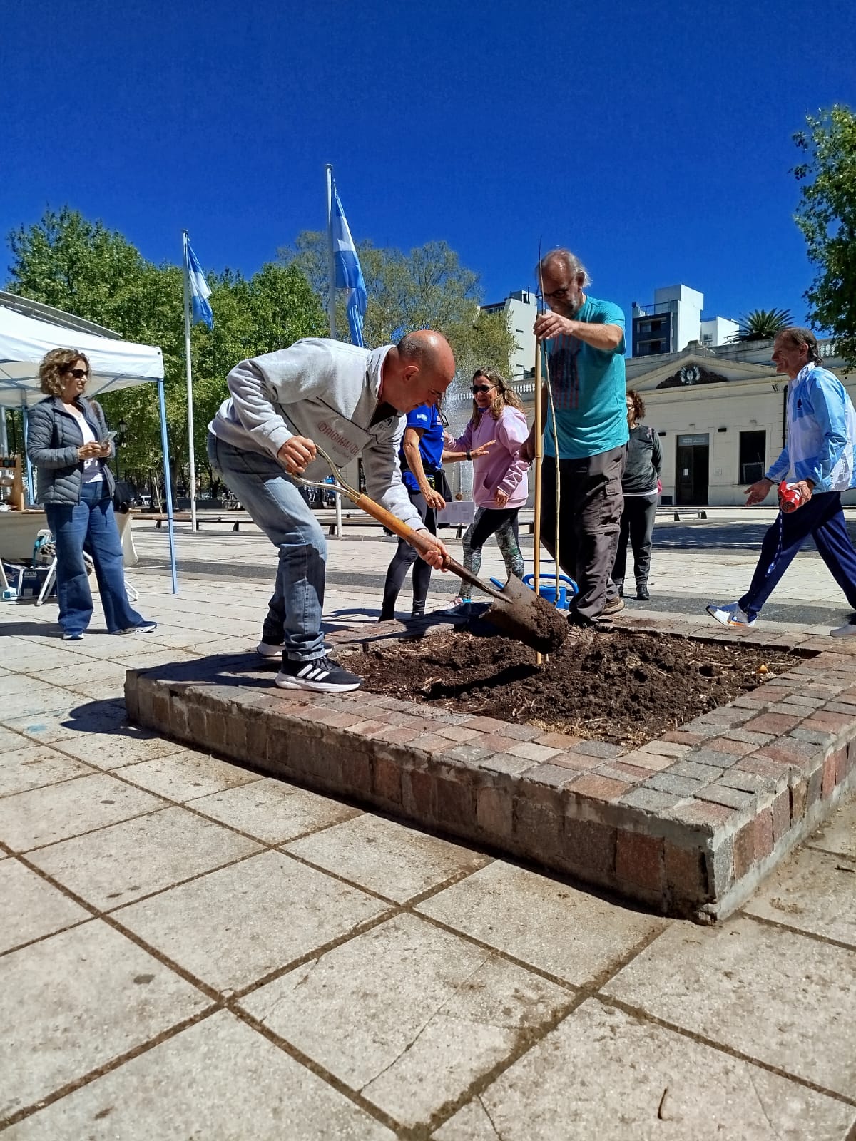 Mientras la competencia se desarrollaba bajo el sol de la mañana del domingo y cada corredor giraba alrededor de la plaza, al costado del Monumento a los Caídos en Malvinas se realizó la plantación de un retoño (un hijo) de un Árbol de la Memoria que hace muchos años fue plantado por la Presidenta de Abuelas de Plaza de Mayo, Estela de Carlotto en la Facultad de Ciencias Agrarias y Forestales de la UNLP.